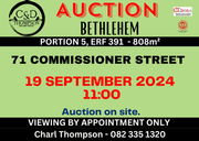 | Description: Date:19 September 2024, Time: 11:00, Venue: 71 Commissioner Street, Bethlehem. |